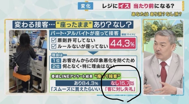 【悲報】「座ったまま接客」お客様の15.7%が失礼だと思っていた…😱 2026年3月29日 最終更新日時 : 2026年3月29日 ココナラwordpress 広告エリア 【警告】夫「子作りするぞ。オナ禁1週間で貯めた精子を排卵日の嫁の子宮に…」 学者「アウト」→! 【悲報】ワイ(40代)、いまだにゲーム・アニメ・漫画が人生のメインになっている 【ゲーム雑談】3月も残り僅か、2026年現時点のお気に入り、一押しのタイトルは?『シブヤスクランブルストーリーズ』クラファン未払のニュースもピックアップ 【衝撃】女性「ストーカーされない方法、教えます!その方法は・・・」 【悲報】虱俗嬢に惚れて300万円つぎ込んだ結果wwwwwww 【画像】おかあさんといっしょ、新しい歌のお姉さんにハーフを起用してしまい炎上してしまうwwwwww 「JPYC」のメリットとデメリット。普及すると金融インフラはどう変わる?【岡部典孝×堀江貴文】 【緊急】カズレーザー「自分の命顧みない犯罪、防ぐ方法ない」 ⇒! 【動画】大谷翔平、ドジャースタジアムでブチギレてガチ乱闘に発展wwwww インドの伝統「牛糞水風船」←ヤバすぎて草 【悲報】「座ったまま接客」お客様の15.7%が失礼だと思っていた…😱 1:名無し :2026/03/29(日) 10:44:05.931ID:wqS6xZEBx 怖いよこの国 2:名無し :2026/03/29(日) 10:45:01.792ID:uBFnrOzMu お客様に対してナメた態度はアカンからな 10:名無し :2026/03/29(日) 10:47:44.800ID:wqS6xZEBx >>2 店員腰痛い痛いなの 続きを読む 続きを見る(外部サイト) 広告エリア 【警告】夫「子作りするぞ。オナ禁1週間で貯めた精子を排卵日の嫁の子宮に…」 学者「アウト」→! 【悲報】ワイ(40代)、いまだにゲーム・アニメ・漫画が人生のメインになっている 【ゲーム雑談】3月も残り僅か、2026年現時点のお気に入り、一押しのタイトルは?『シブヤスクランブルストーリーズ』クラファン未払のニュースもピックアップ 【衝撃】女性「ストーカーされない方法、教えます!その方法は・・・」 【悲報】虱俗嬢に惚れて300万円つぎ込んだ結果wwwwwww 【画像】おかあさんといっしょ、新しい歌のお姉さんにハーフを起用してしまい炎上してしまうwwwwww 「JPYC」のメリットとデメリット。普及すると金融インフラはどう変わる?【岡部典孝×堀江貴文】 【緊急】カズレーザー「自分の命顧みない犯罪、防ぐ方法ない」 ⇒! 関連記事 インドの伝統「牛糞水風船」←ヤバすぎて草 【炸裂】ヨッメ「ねぇ、今日はアウトレット行こ!」ワイ「あっ!(絶望)」⇒! 【ガチ】外国人彼女、エロくて優しくてコスパ最強wwww 【画像】ヨッメ(32)「毛ガニ美味しかったね!」ワイ(33)「最後に味噌甲羅焼きやる?」ヨッメ「やるー!」⇒結果wwwwww