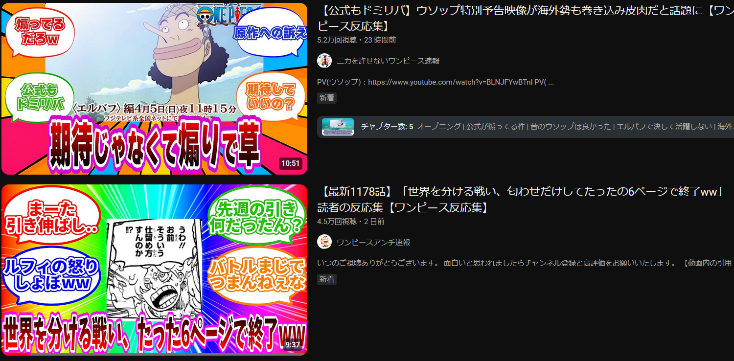 ワンピース批判動画、もはや人気コンテンツ化してしまうwwww