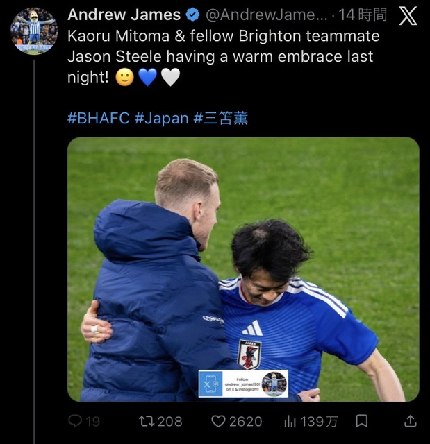 Kaoru Mitoma & fellow Brighton teammate Jason Steele having a warm embrace last night! 🙂💙🤍#BHAFC #Japan #三笘薫 pic.twitter.com/ESHNfFvFbb