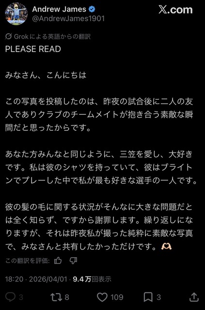 — Andrew James (@AndrewJames1901) April 1, 2026