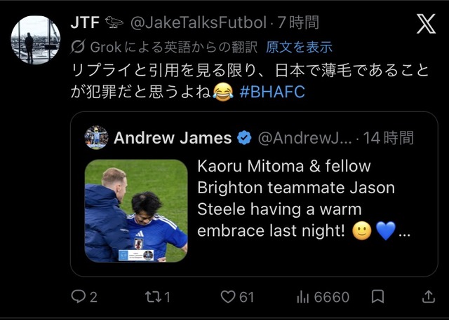 Judging by the replies and quotes, you’d think it was a crime to be balding in Japan 😂 #BHAFC https://t.co/UHDB916Tol