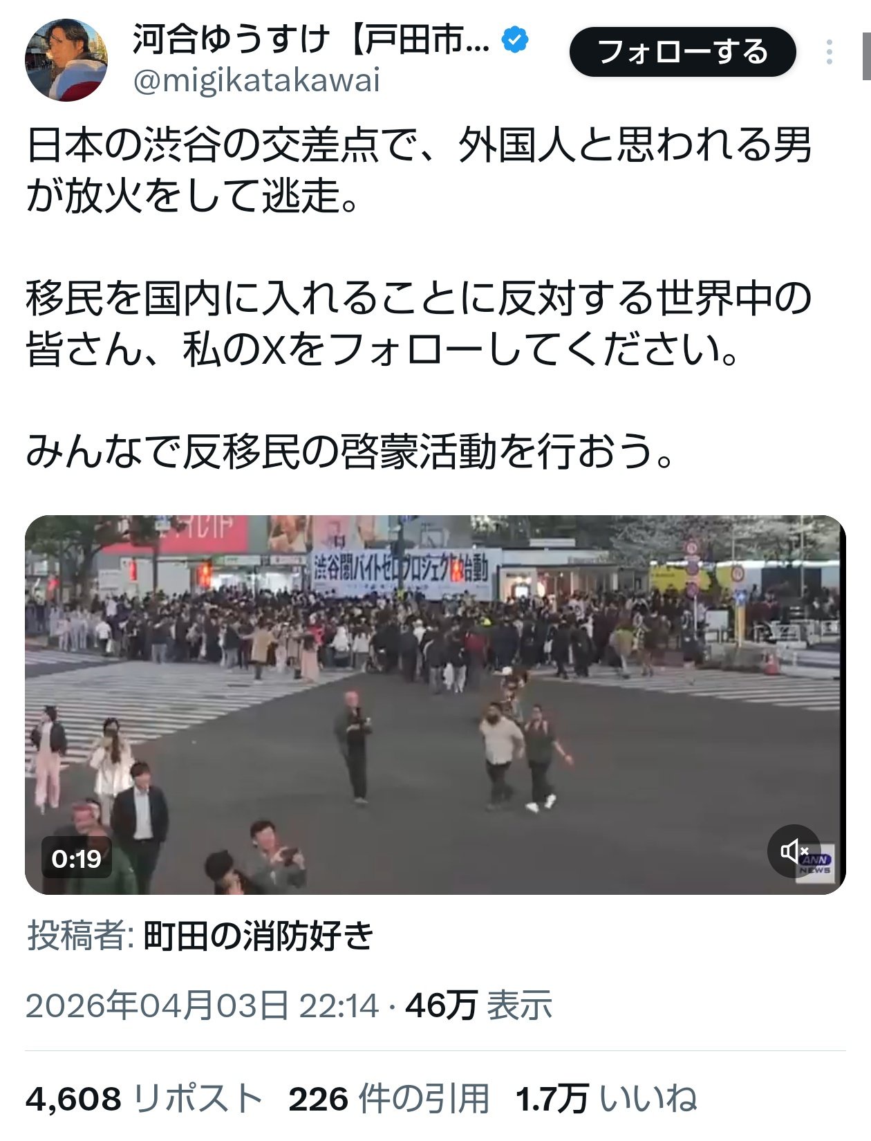 𝕏民「渋谷の放火犯は移民してきた外国人!!」→放火したのが極右思想の純日本人だと判明wwwwwwwwwwwwwww