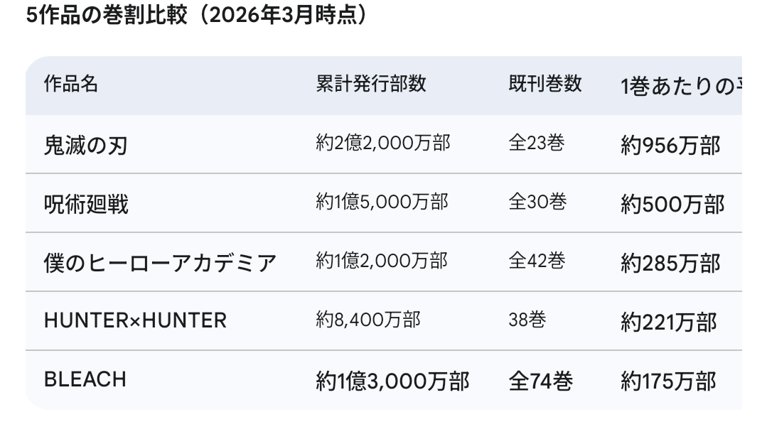 BLEACHより格上と思ってたから思ったより売れてなかったわ
