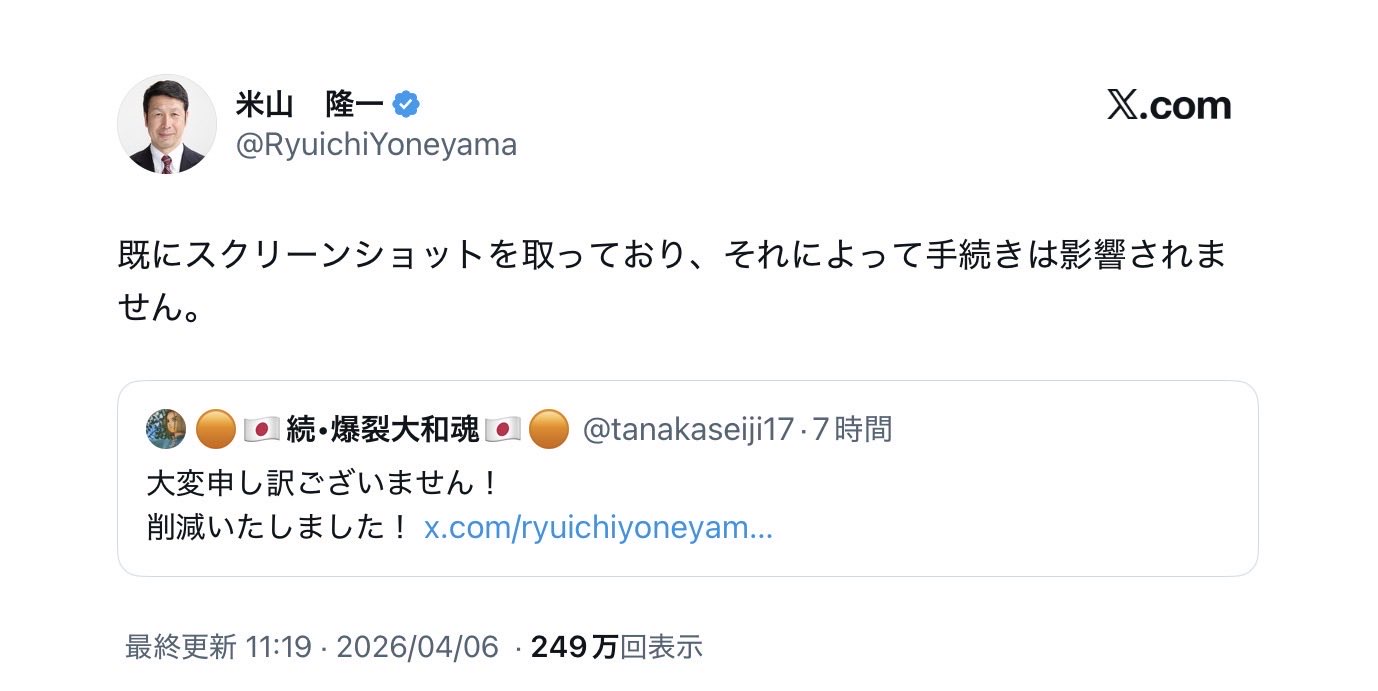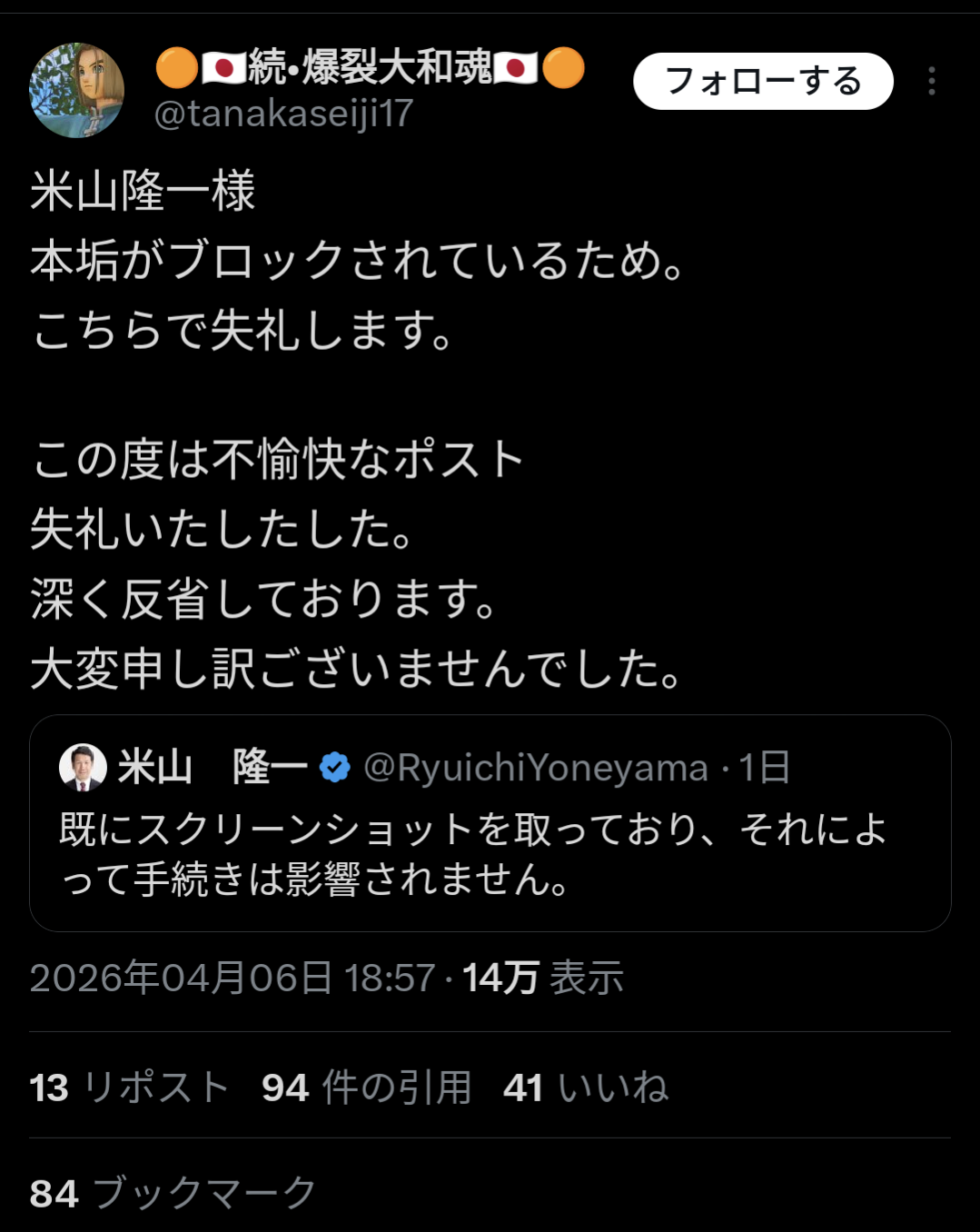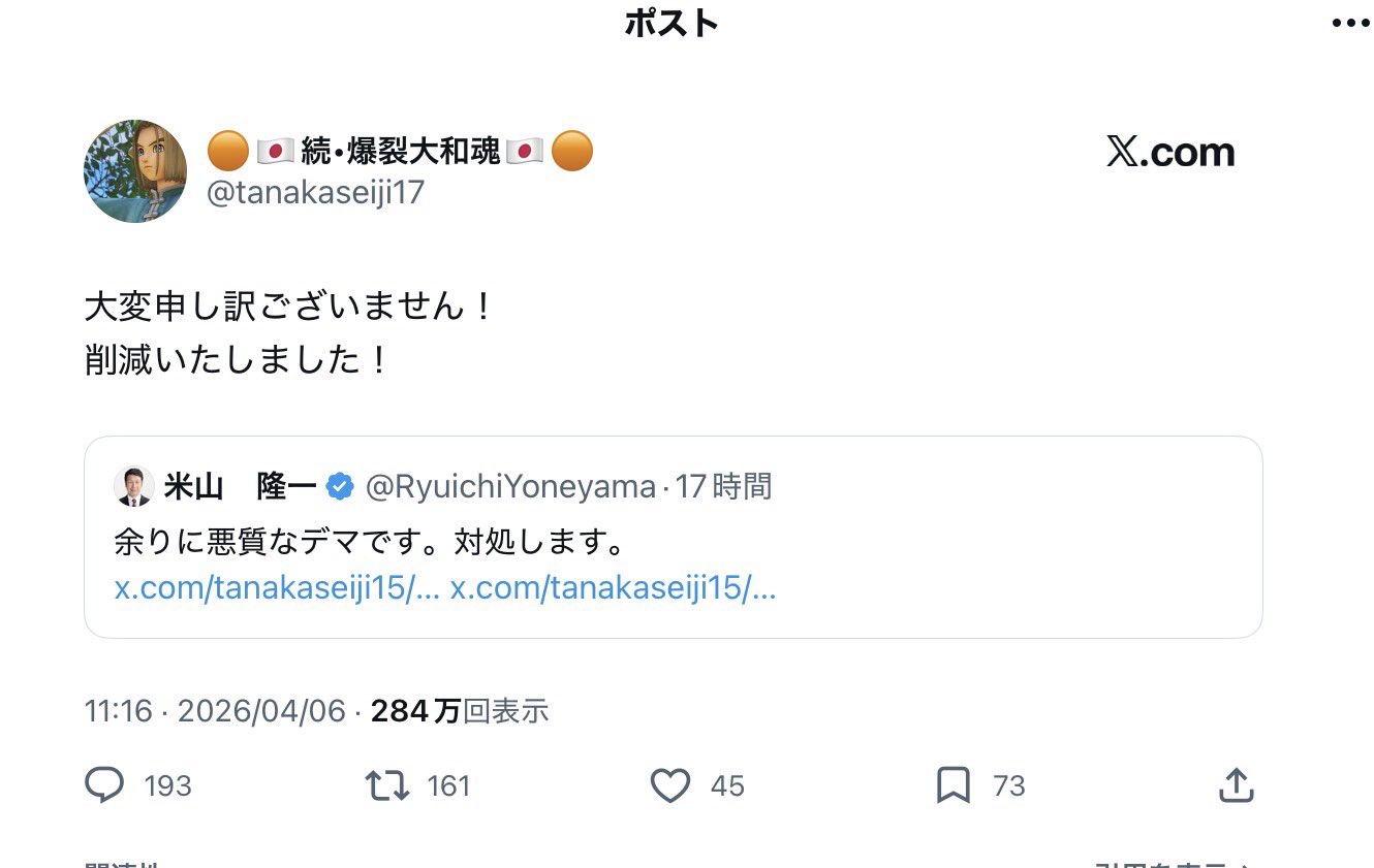 米山に訴えられそうなX民さん、米山叩きツイートを削減して謝ったのに許してもらえないwwww