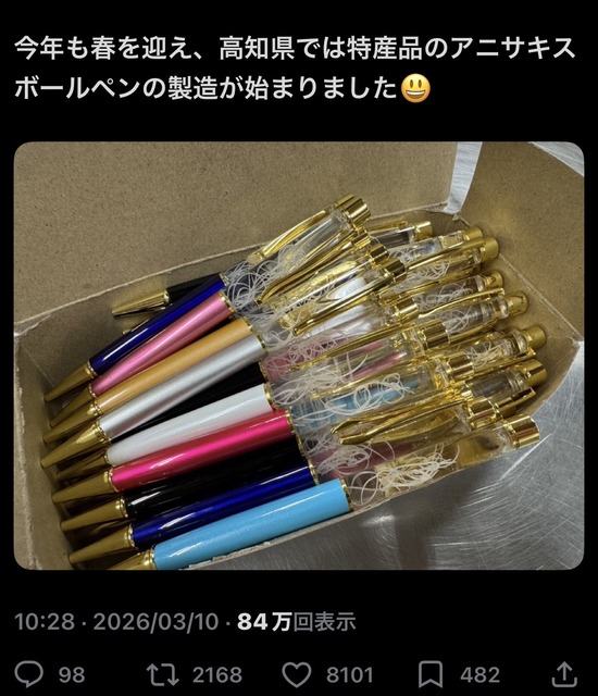 【閲覧注意】アニサキス入りのボールペン、高知県発大ブームの兆しwwwwwwww