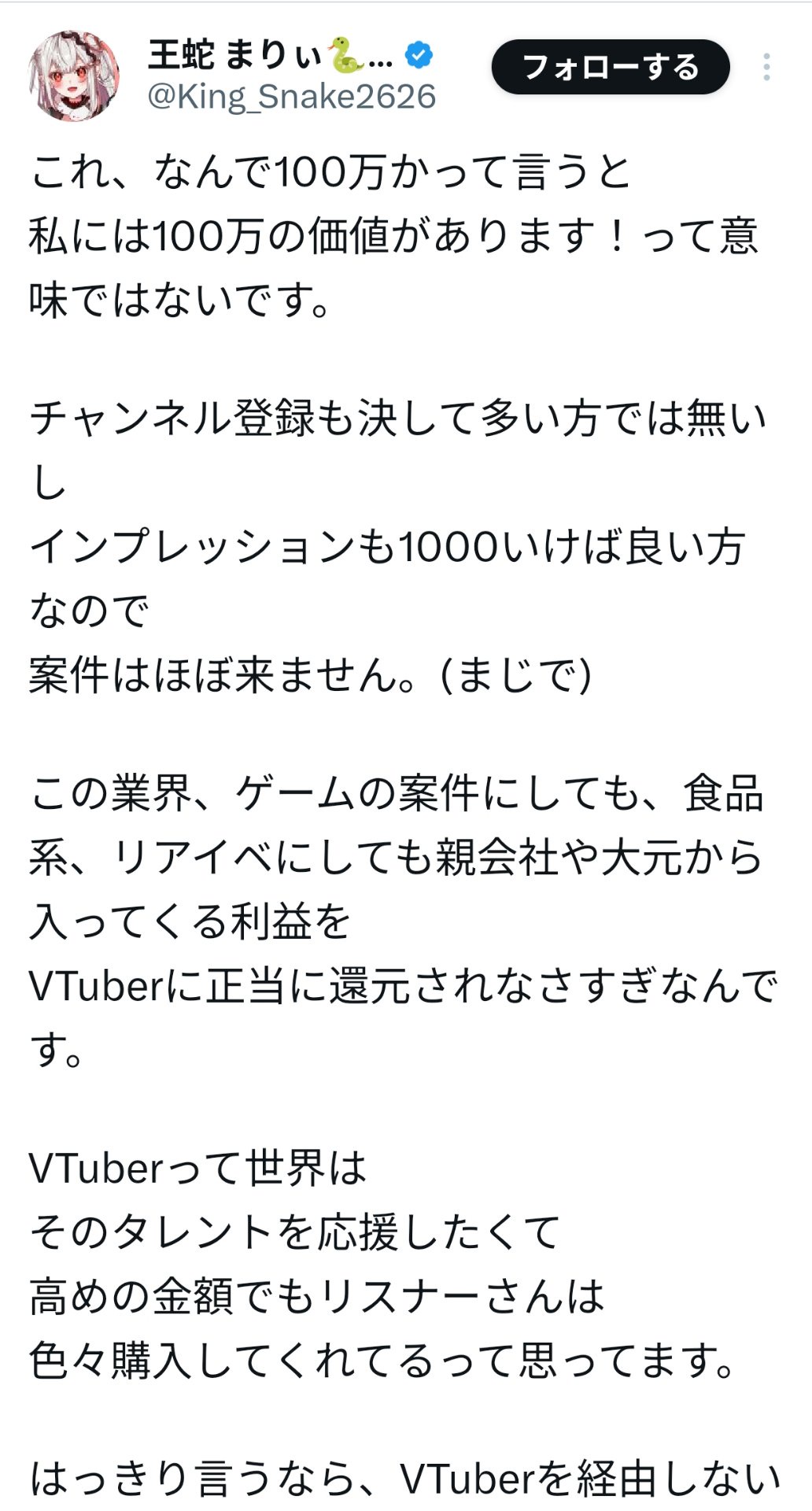 VTuberに正当に還元されなさすぎなんです。