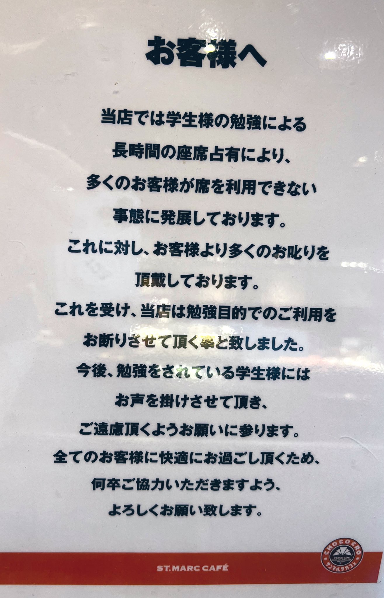 【画像】カフェ・図書館「うちで勉強すんな!」→学生「じゃあどこで勉強すればいいんだ…」
