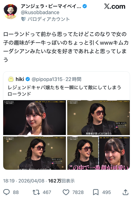 【画像】ローランドさん、キャバ嬢より志願者の方が可愛いと言い放った結果チー牛扱いされてしまうwwwwww