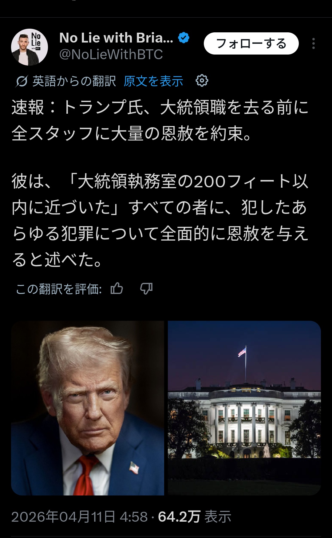 トランプ「部下の犯罪は全部チャラにしたるで!」