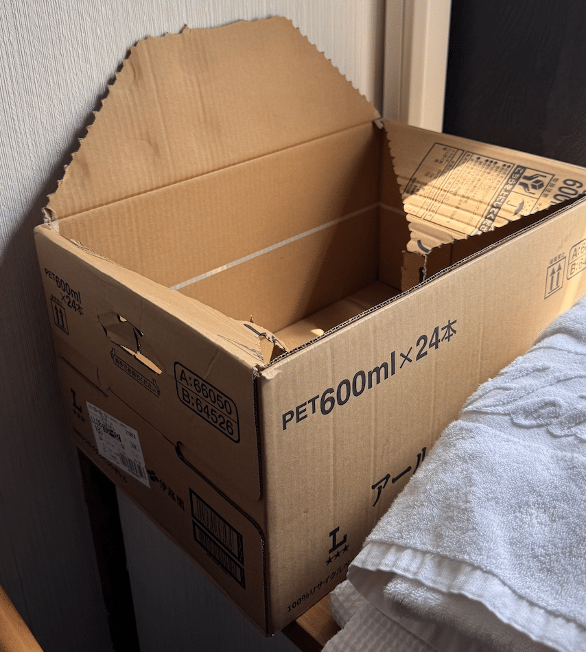 これローソン行って段ボールくださいて言うてもらってきたんかな