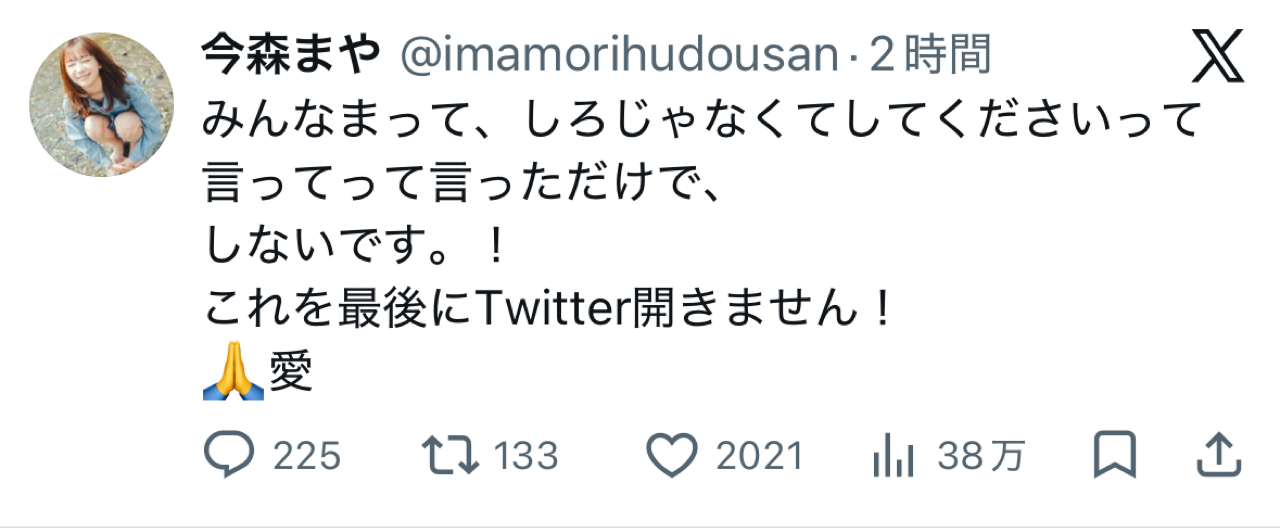 AVデビューしません、もうTwitterやりませんと宣言