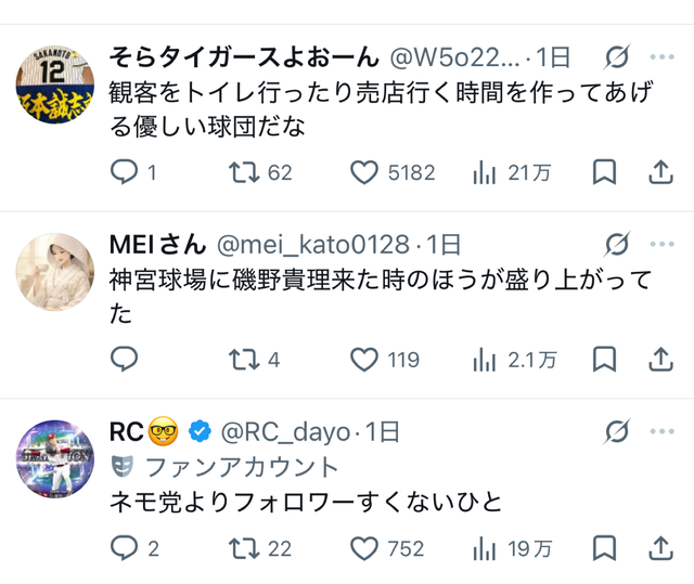 — そらタイガースよおーん (@W5o22KGXLZ75614) April 21, 2026
