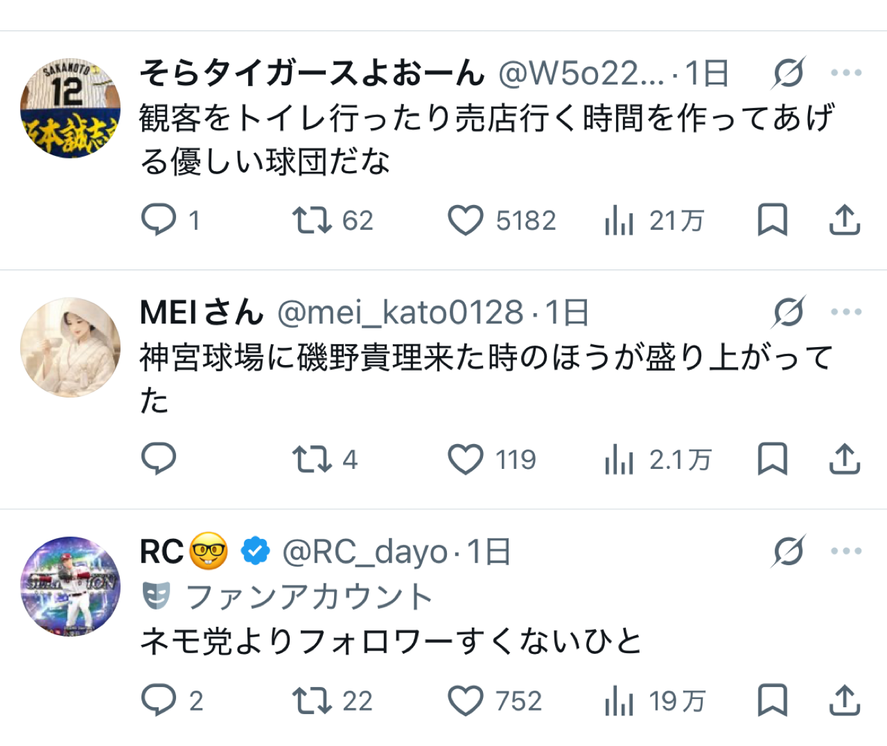 阪神ファンやら西武ファンやら広島ファンやらよりどりみどりや