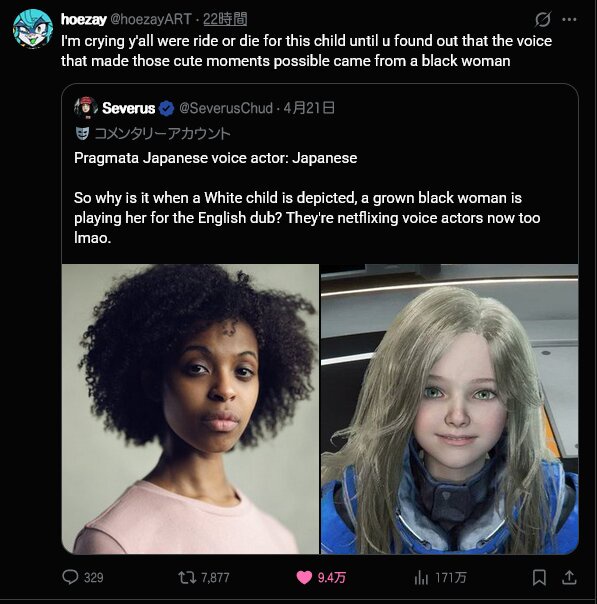 カプコン新作「プラグマタ」少女役の声優が黒人というだけで炎上wwwww