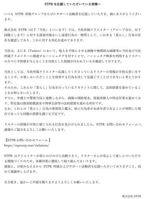 すとぷり運営「#すとぷりぎゃらりーハッシュタグ荒らした奴は未成年でも許さん。法的措置を取る」