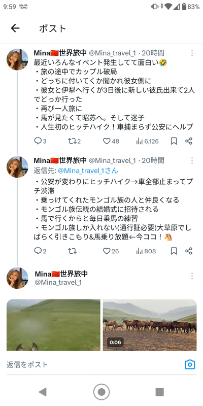 陽キャ女子、一人でウイグル観光し公安を使ってヒッチハイク、モンゴル族の結婚式に参加などやりたい放題