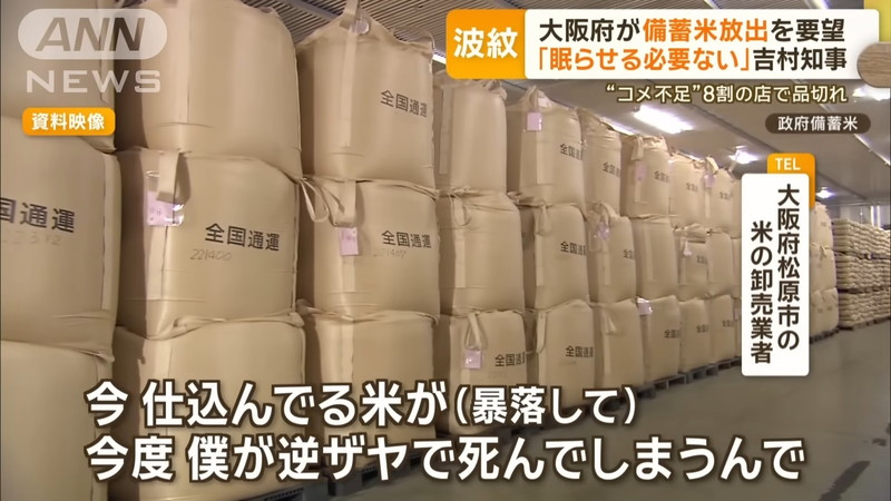 【画像】大阪府「米ないぞ備蓄米放出して」 お米の卸売業者さん「暴落して困るからやめて😭」