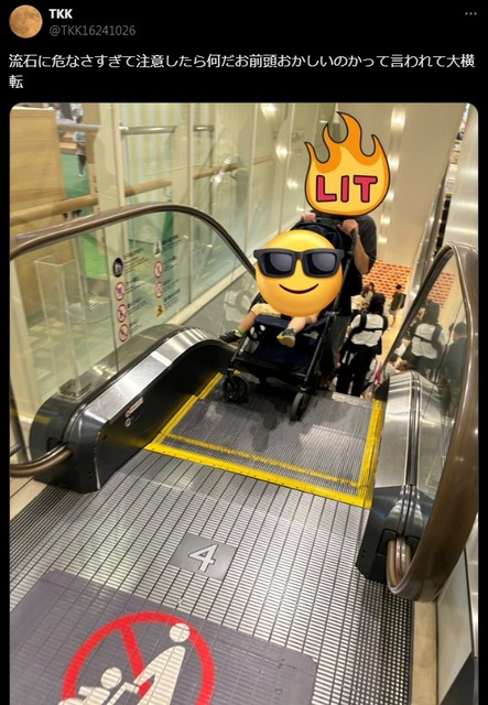 X民「べビーカーをエスカレーターに乗せるのは危ないで!」パシャリ
