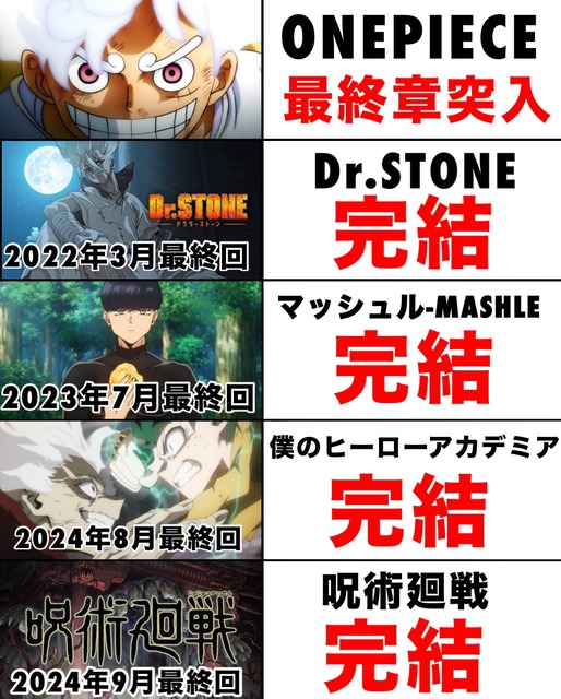 【画像】少年ジャンプさん、主力漫画が次々完結し終わるwwww