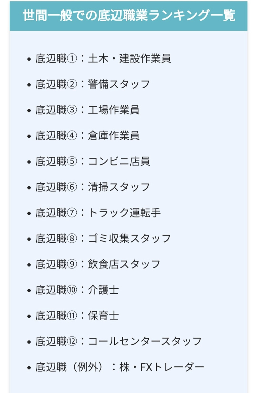 【画像】テレビ局「底辺職ランキングがコチラwwww」