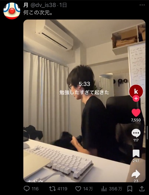大学生さん「勉強したすぎてこんな時間に起きた(5:33)」→動画撮影開始