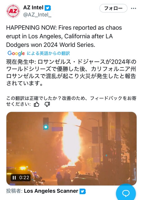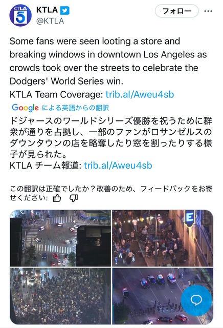 現地のドジャースファン、暴徒化して暴れまわるwwwww