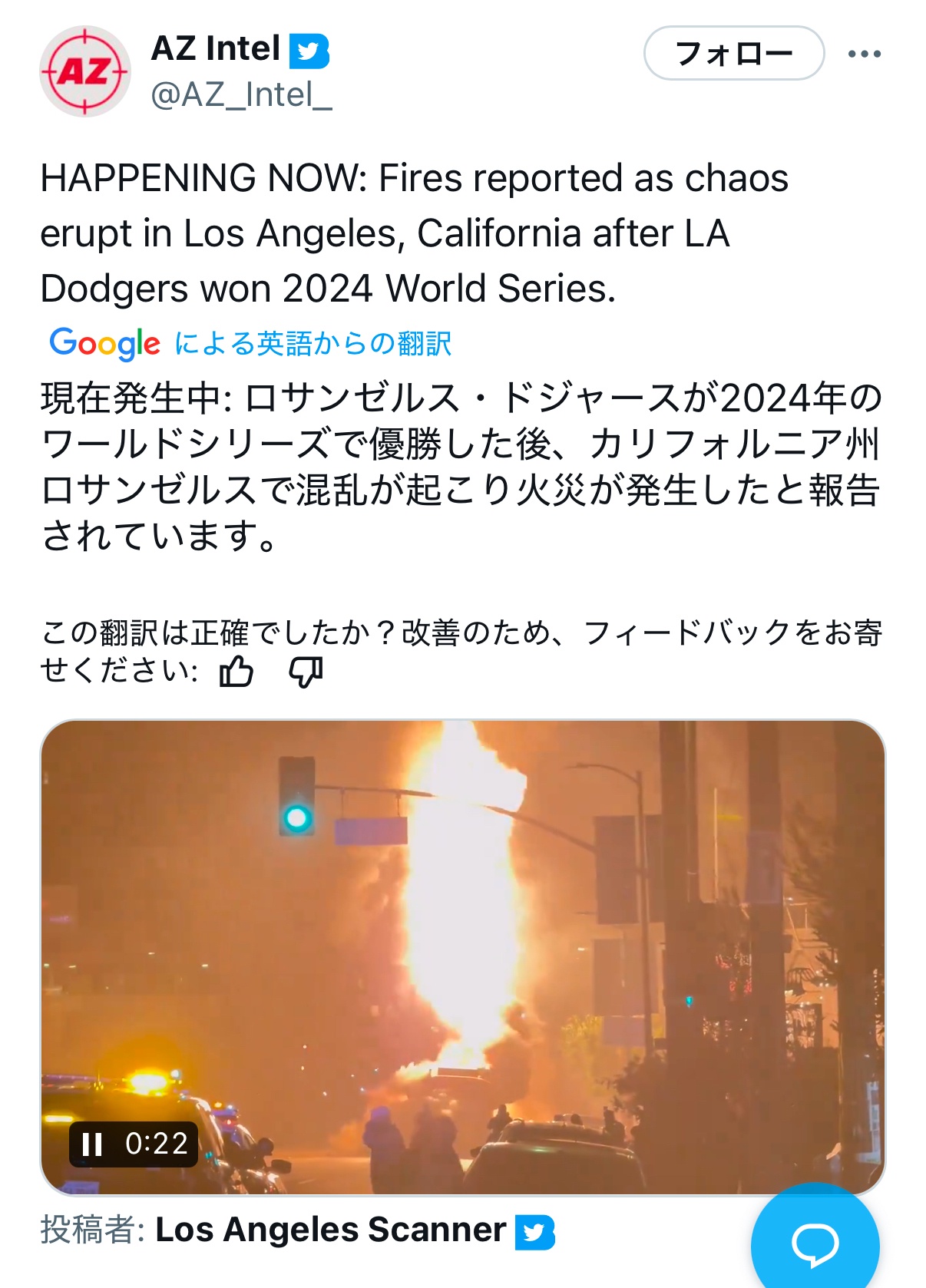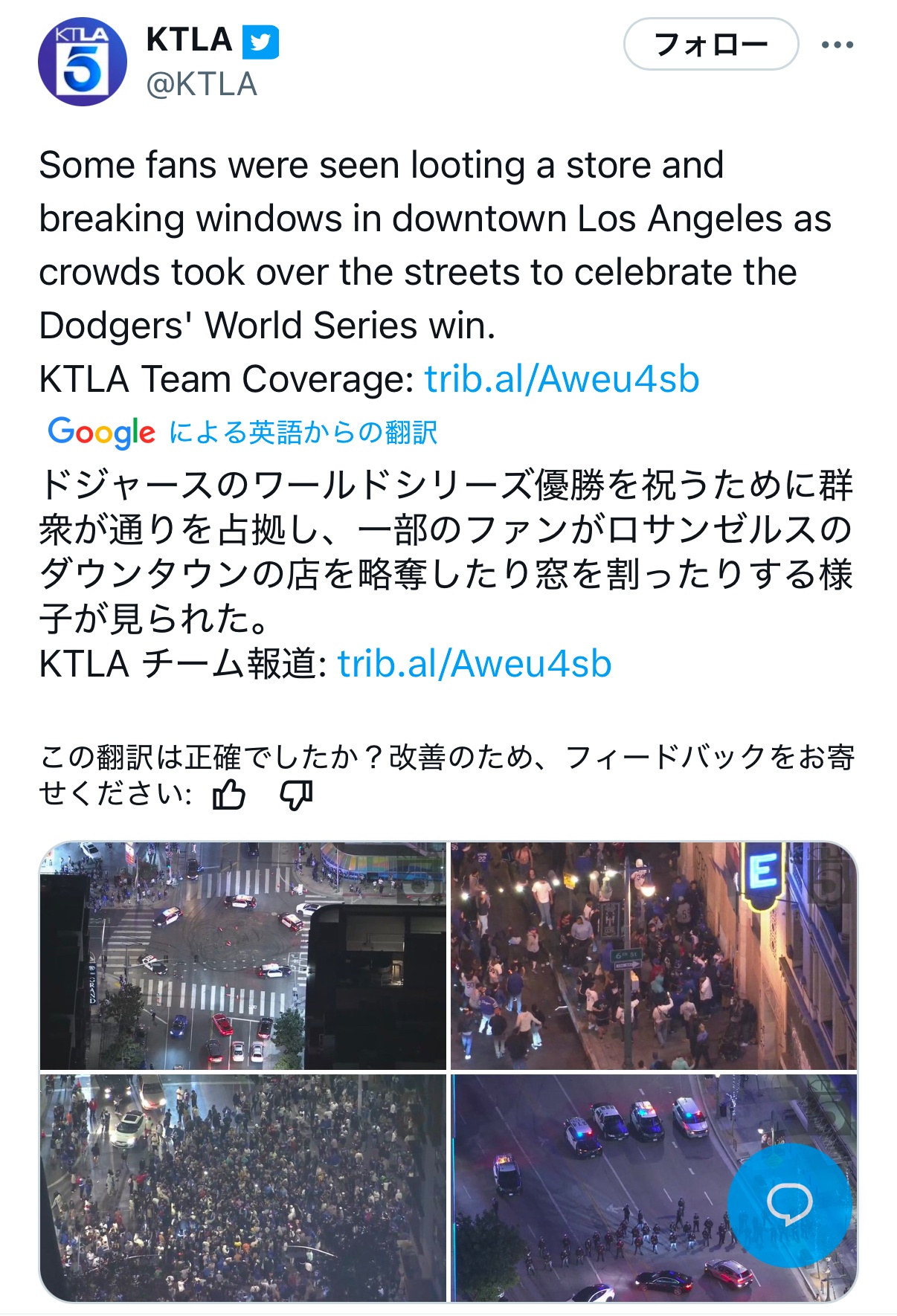 現地のドジャースファン、暴徒化して暴れまわるwwwww