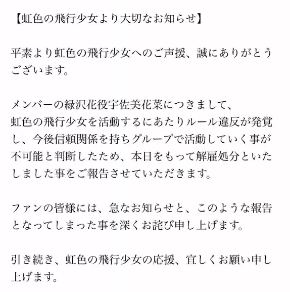 ユニット虹色の飛行少女メンバー、アイドル在籍中にA〇デビューが発覚し解雇 pic.twitter.com/2IDPtIQ06Q