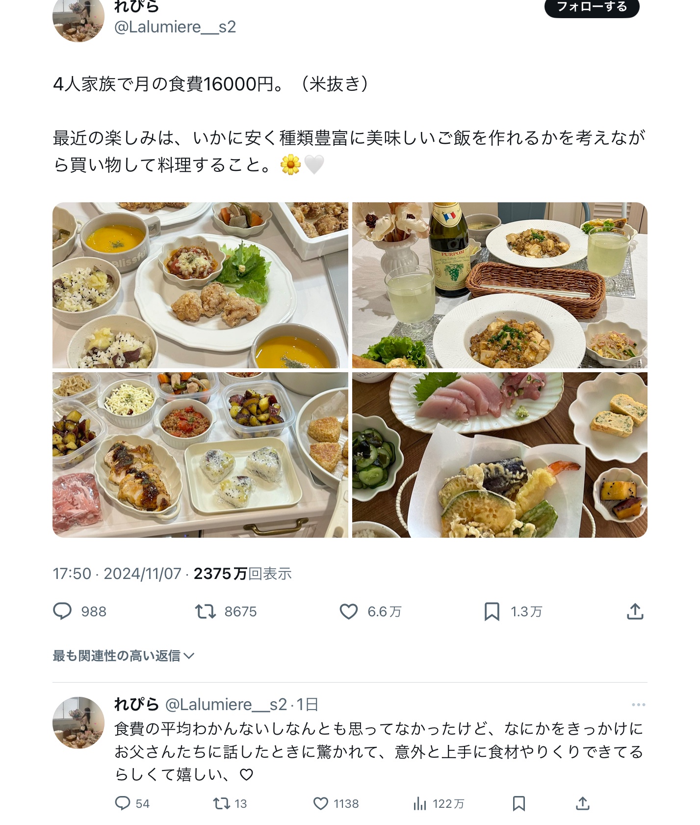 【画像】4人家族で食費が月16000円の食事内容がこちらwwwww