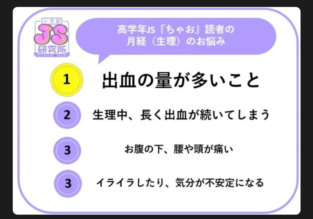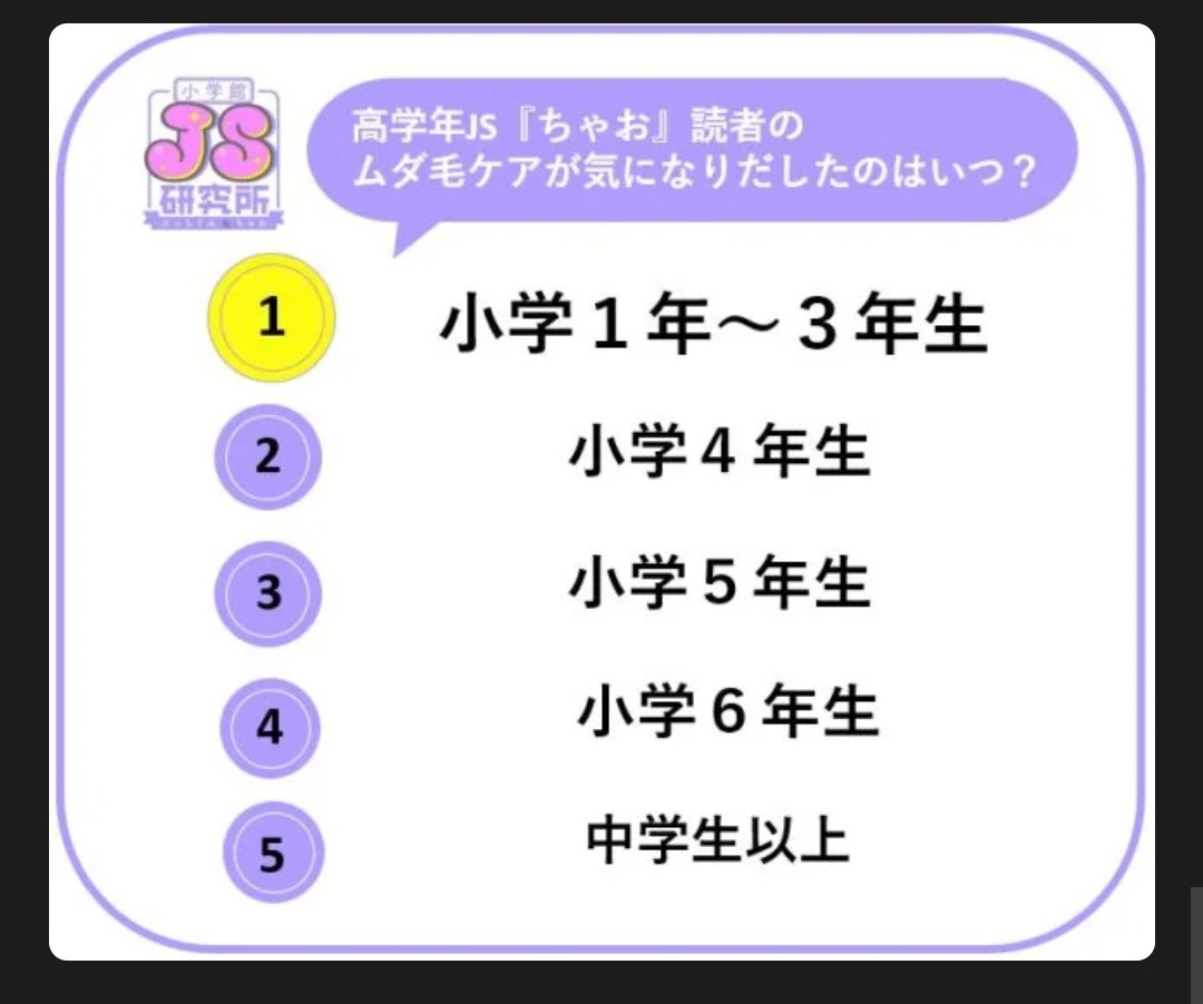 小学生女子のリアルな生理・下着・ムダ毛のお悩みは?『ちゃお』読者のイマドキ女子小学生(JS)に聞いた「フェムケア」調査結果発表!本文はこちら