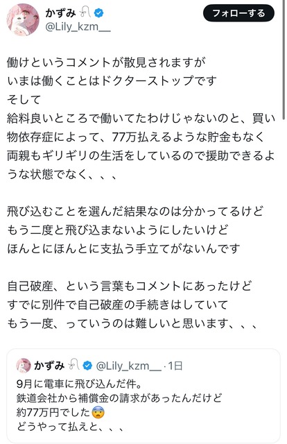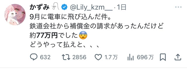 【悲報】飛び込み失敗して電車を止めた女性、鉄道会社の補償金を払えず詰んでしまう