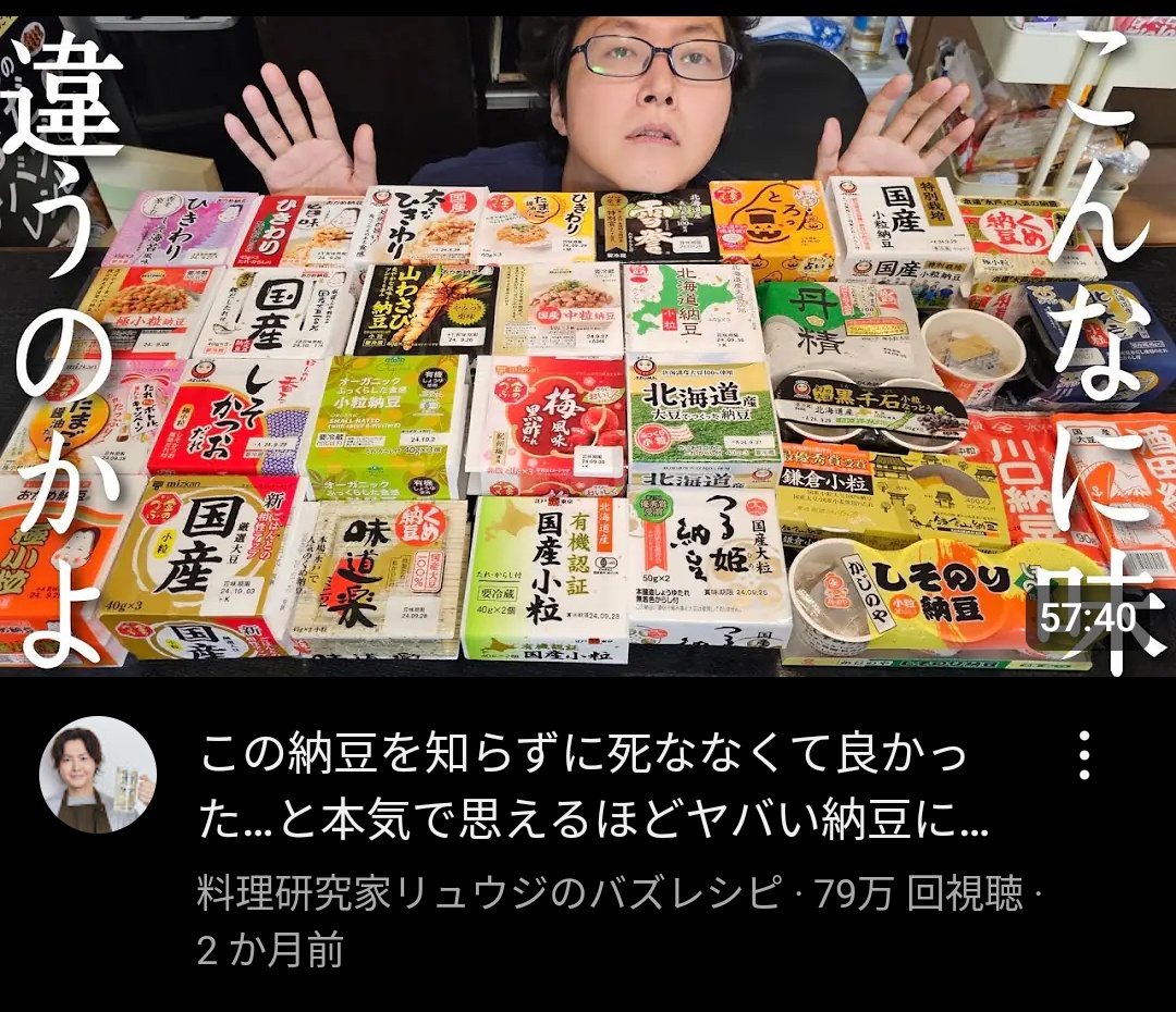 【画像】料理研究家リュウジ「これがガチで美味い納豆ランキングです」