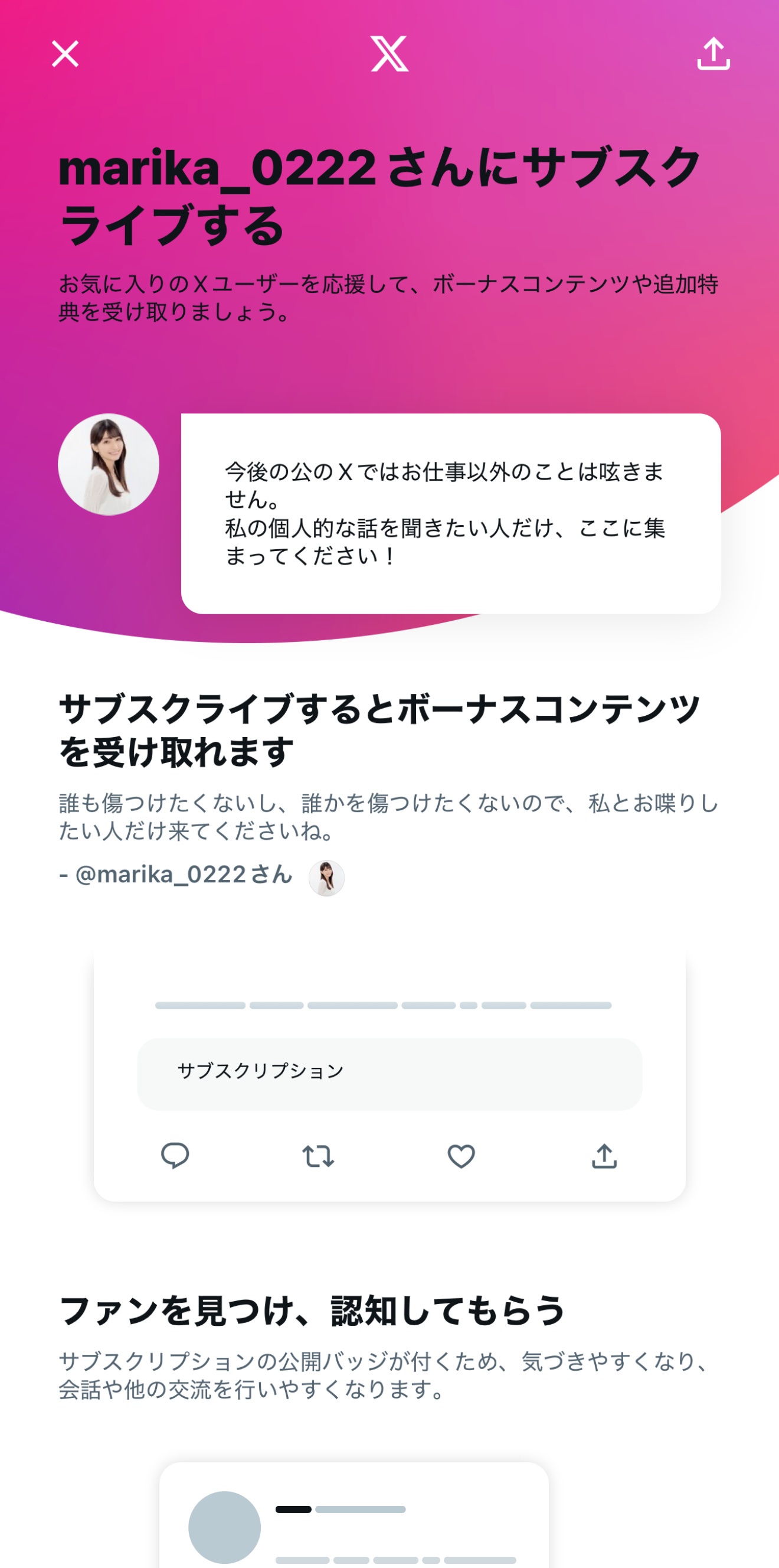 新たにXでサブスクリプションができました!