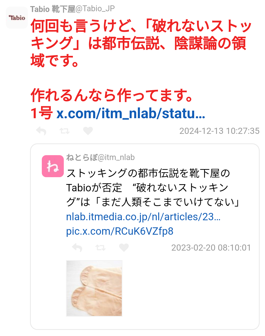 女さん「ストッキングはわざと破れやすく作ってる!」靴下屋「それ陰謀論」女性「😡」