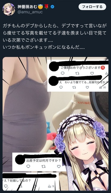 【画像】Vtuberさん「これあたしの体です…」リスナー「え、妊娠してる?ワイより腹でてる…w」