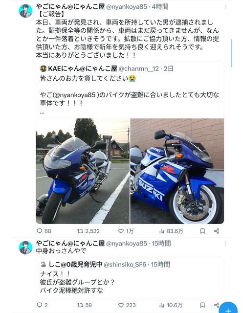 【悲報】39歳ネカマおっさん、盗んだバイクを自慢して速攻で特定され、元旦に自首