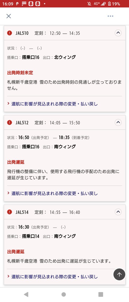 さっさと欠航を決めるANAと遅れながらも飛ばそうとするJAL。ただ、さっさと欠航決めてくれれば苫小牧や新函館北斗に向かう選択ができるからどっちが良いかは言い切れない。 pic.twitter.com/O6fVz7MQOG
