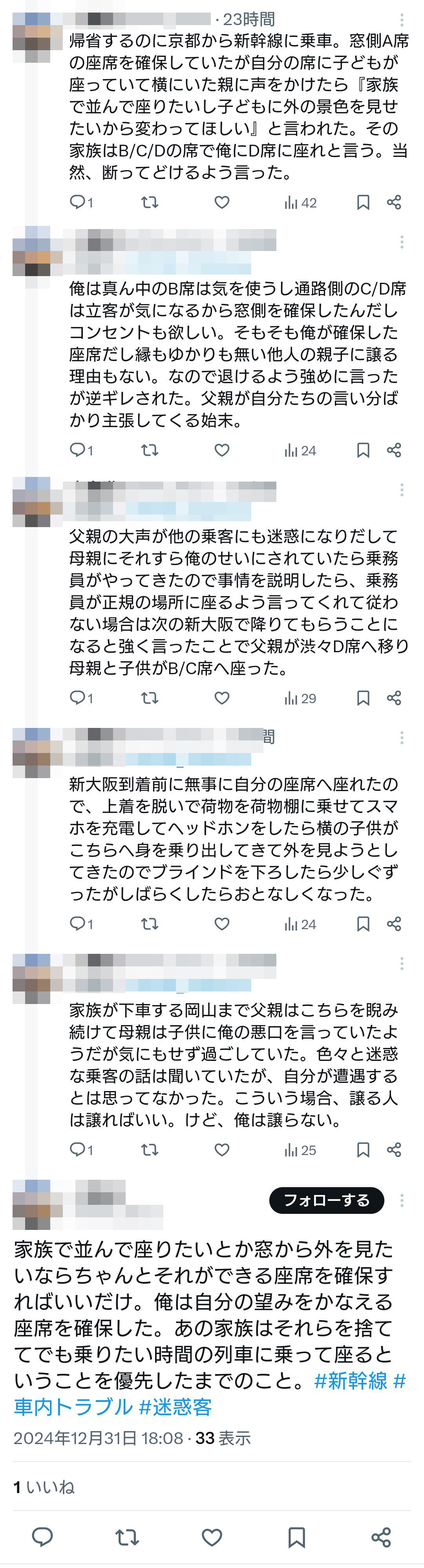 【悲報】新幹線の非常識家族、秩序もルールもなかった