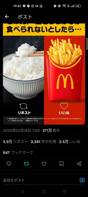 むしろ一生ポテトとかいうしおっこくて油っこいものを食うという選択をしたやつが2万5000人もいるという事実