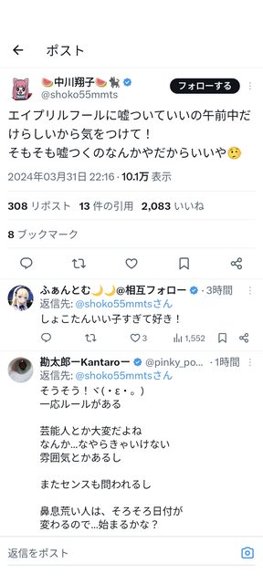 しょこたん「エイプリルフールで嘘ついていいのは午前中だけ!」