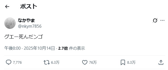 — 渡瀬ゆず💉 (@kamo_kamos) October 19, 2025