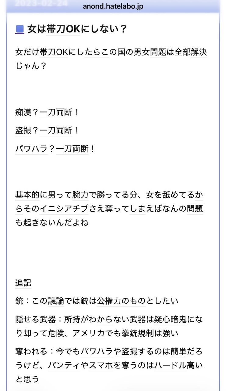 銃社会にするのと変わらん事態にしかならん