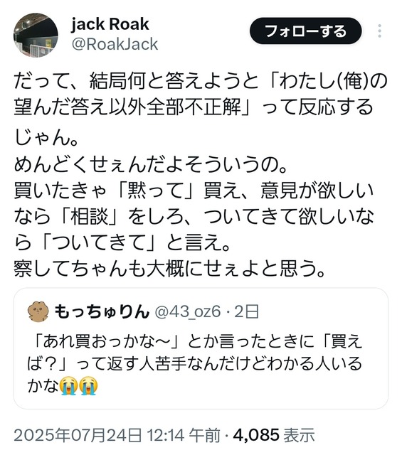女性に「あれ買おっかな~」って言われた時に絶対言っちゃいけないセリフがこれwwww