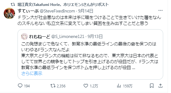 X民「Fラン大は社会悪。本来手に職で生きていけた層をなんのスキルもない人に変えてしまい貧困を生み出すこと」
