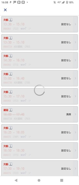 新千歳すごいことになってるな…全便満席の状況でこれだけ欠航出たら単純計算で3000人近く足止め喰らうわけか。
