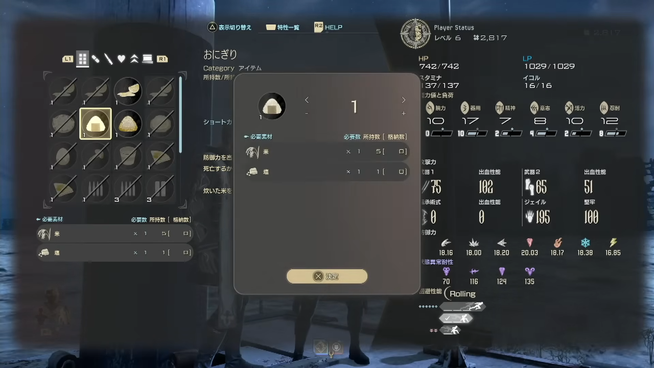 散策で拾ったアイテムから作成も可能。(おにぎりを作ることも可能)