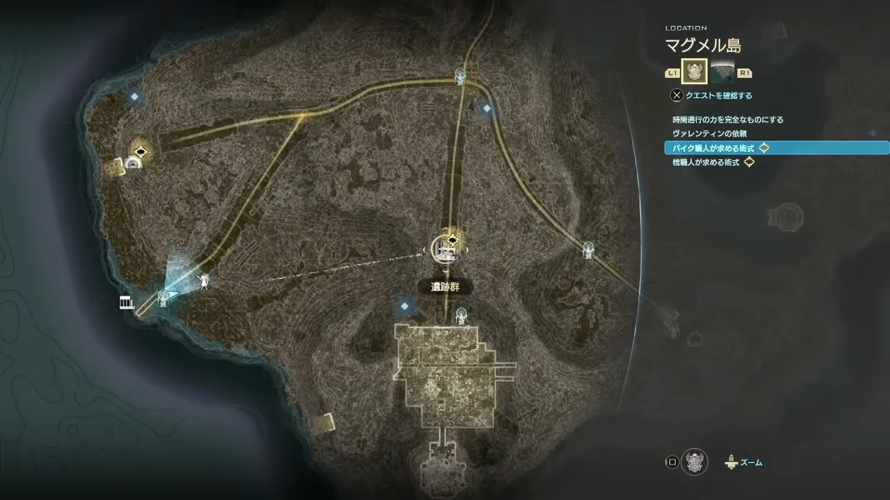 マップには次に何をすればよいか分かるようクエスト状況などの表示も