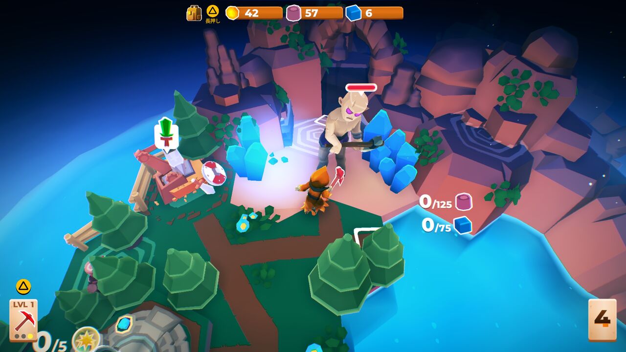 ただ木を伐って鉱石を採掘してエリアを少しずつ広げて行く