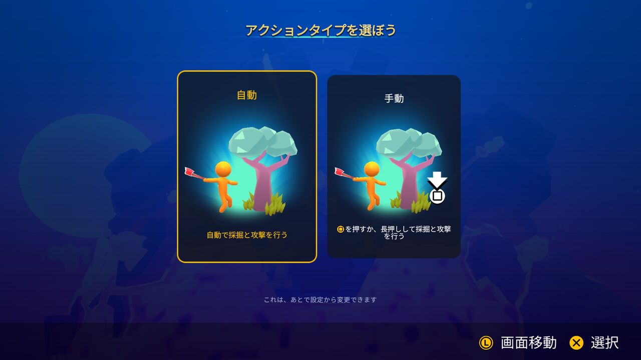 採掘と攻撃を「自動」か「手動」でするか選べる