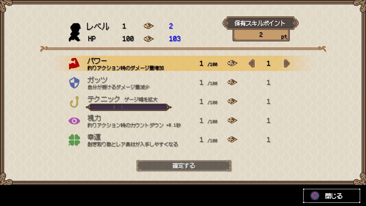 レベルアップ時に貰えるポイントを自分の苦手な箇所に割り振ろう